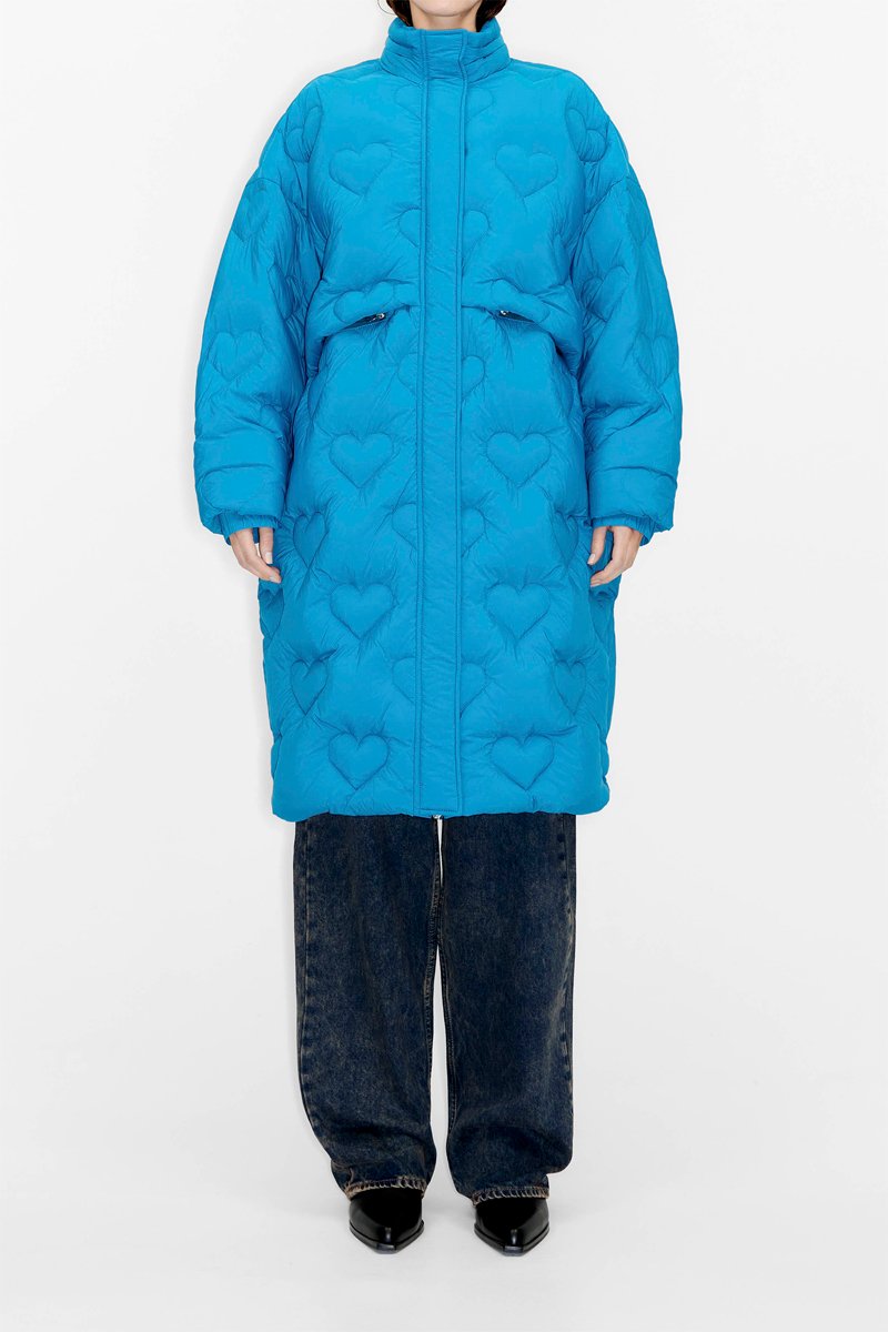 Gewatteerde Lange Jas met Capuchon - Blauw