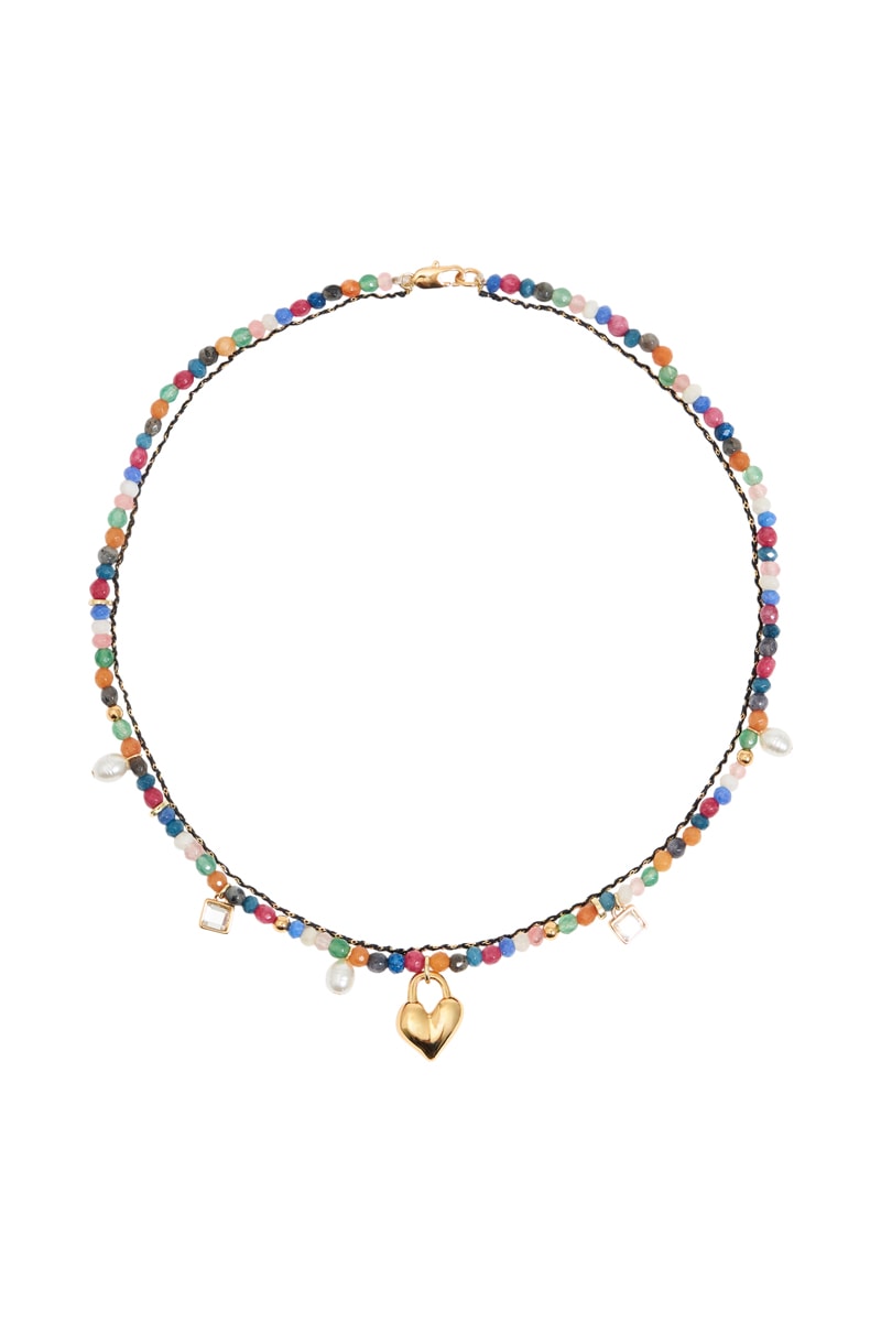 Materiaal: steen, zinklegering, messing, katoen, glas, kunstparels
