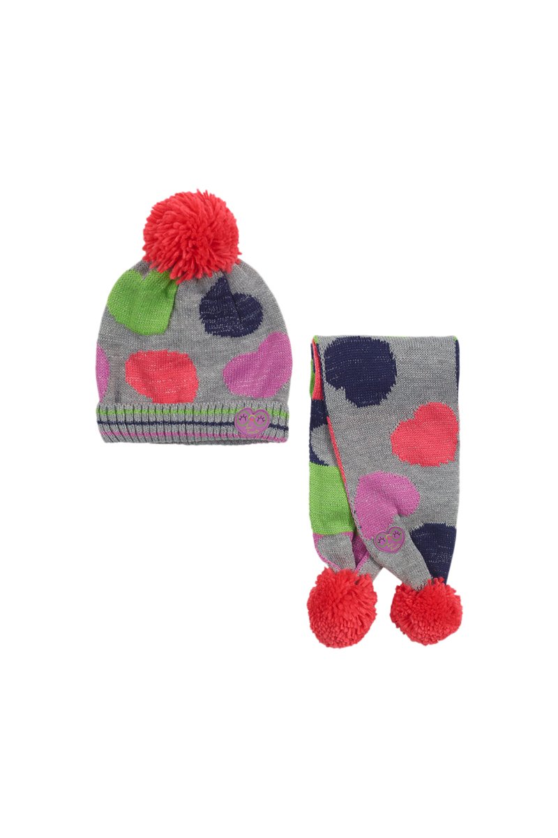 Muts met Pompon en Sjaal - Gemêleerd Grijs