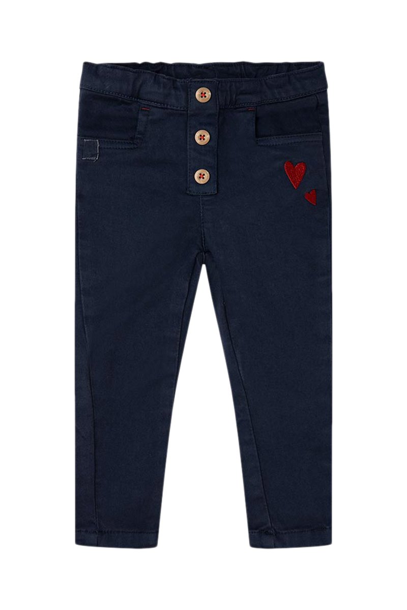 Geborduurd hartmotief en decoratieve knopen aan de voorkant.