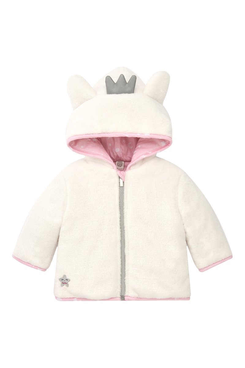 Capuchon en oortjes met detail in decoratieve vorm.