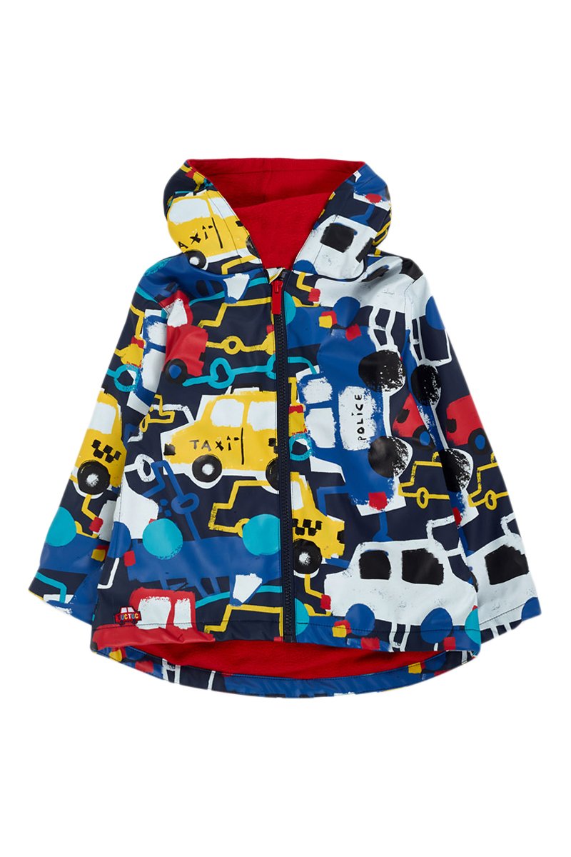 Regenjas met capuchon.