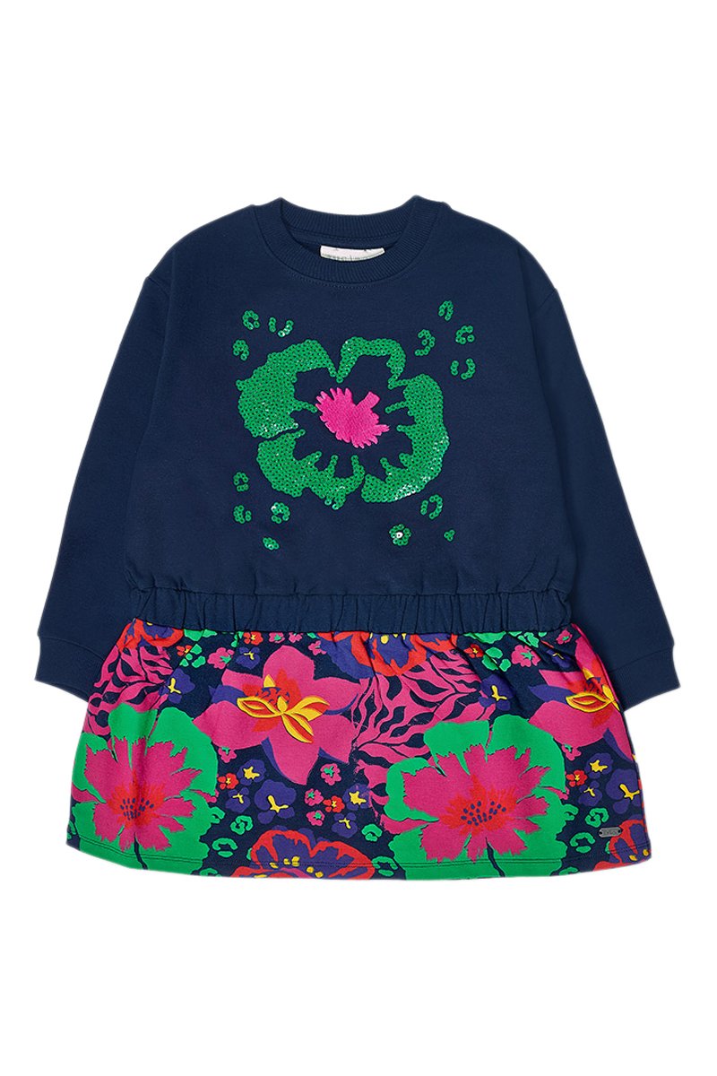 Bloemen- en luipaardmotief op het rokgedeelte.