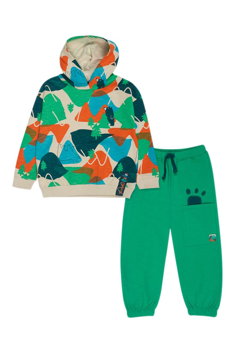Sweater met Capuchon en Joggingbroek - Groen en Beige