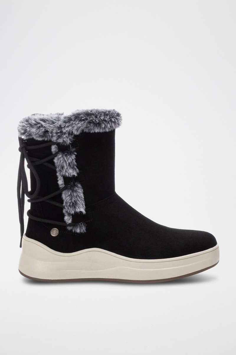 Ritssluiting aan de zijkant en vetersluiting aan de achterkant.