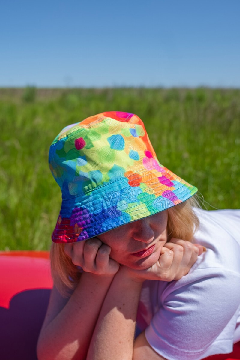 Dubbelzijdig Bobhoedje Bobby - Hemelsblauw en Oranje - Multicolor