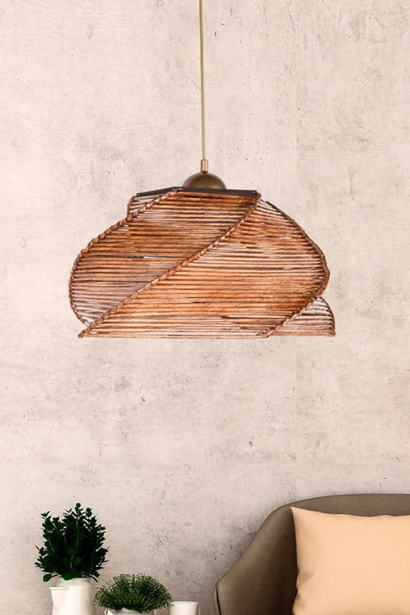 Hanglamp van hout en bamboe.