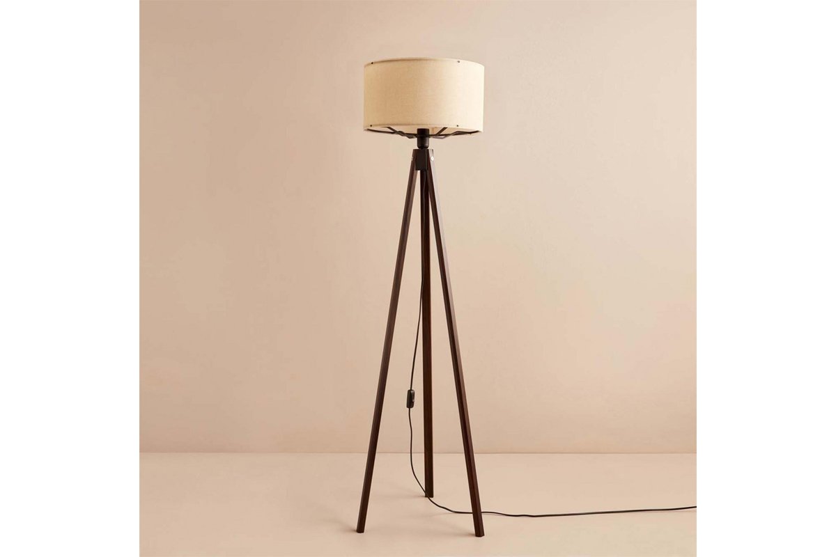 Houten Staanlamp op Driepoot - Crèmekleurig en Naturel - 60 W