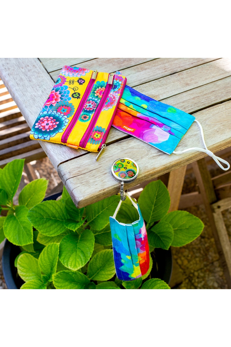 Kleur: geel, groen, roze en koraalrood