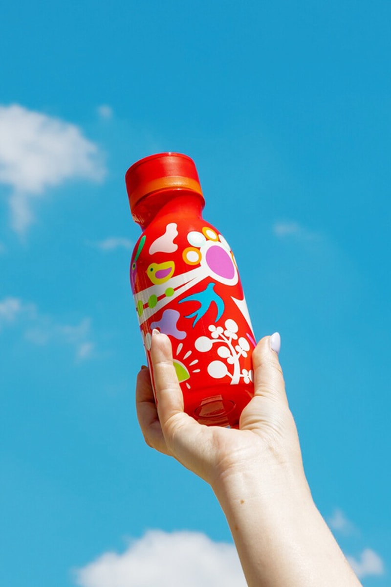 Thermosfles van roestvrij staal met afdichting van silicone.