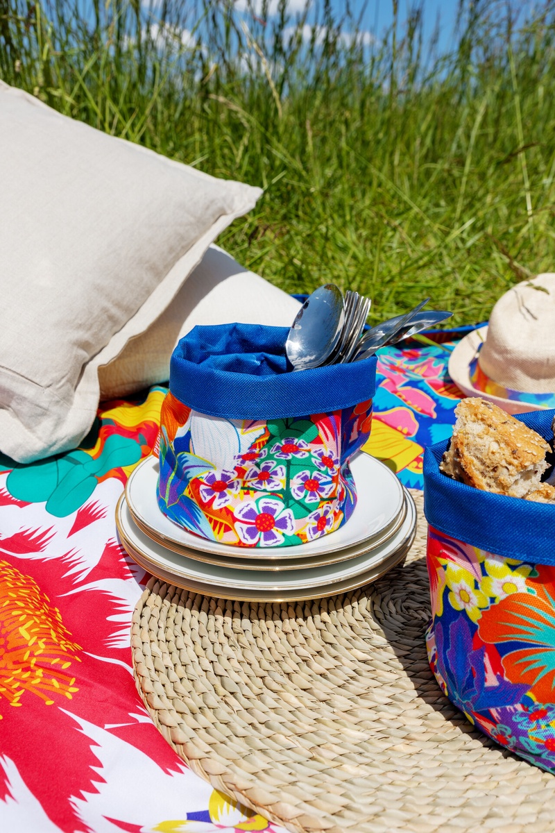 Kleur: koningsblauw, oranje, hemelsblauw en groen