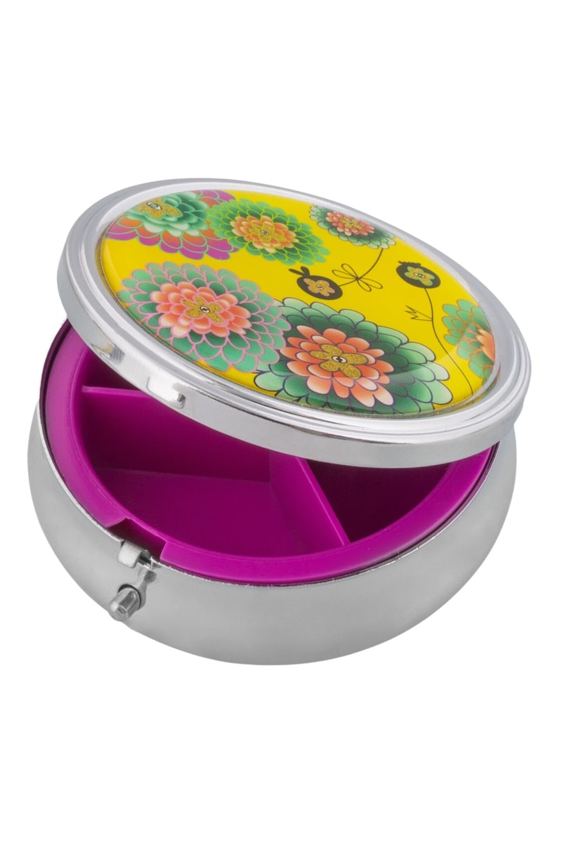 Kleur: zilverkleurig, fuchsia, geel en groen