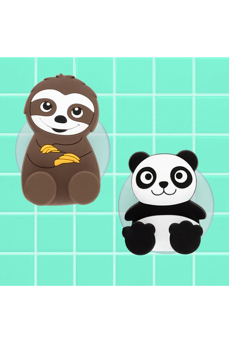 2 Tandenborstelhouder Ani-toothi - 5 x 6 x 3,6 cm - Bruin en Zwart
