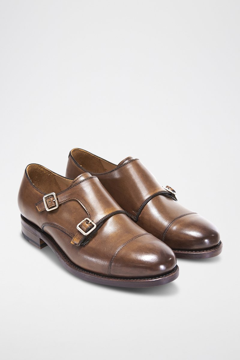 Derby's van leer met gespen.