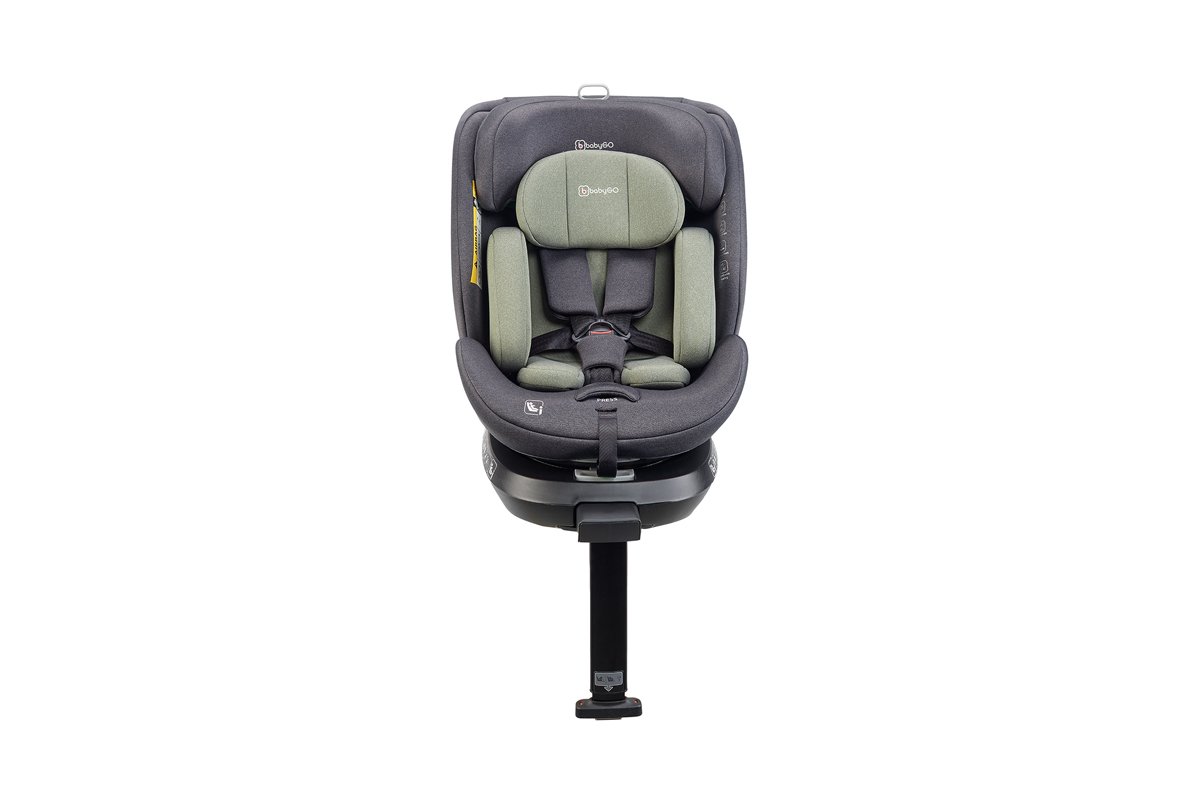 Hij kan 360° worden gedraaid, waardoor hij ideaal is voor zowel naar voren gerichte (76 cm - 150 cm) als naar achteren gerichte (40-105 cm) posities. Voor een veilige bevestiging in achterwaarts gerichte positie is hij uitgerust met ISOFIX en een steunpoot.