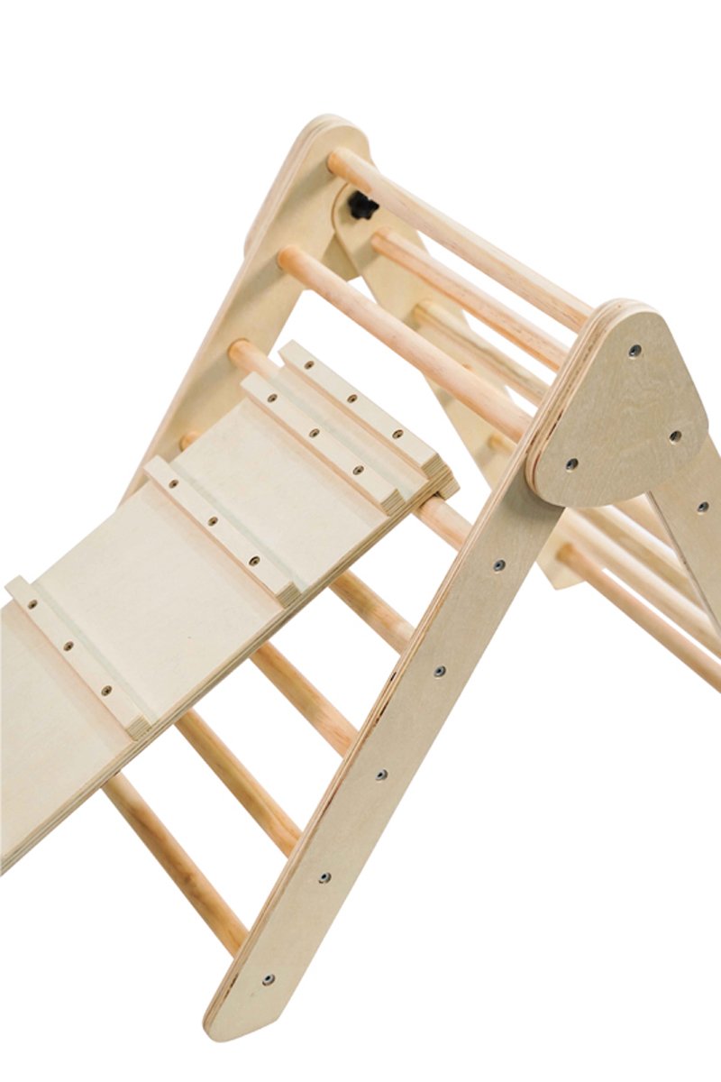 Gemaakt van hout van hoge kwaliteit, biedt het 2 functies in 1 product: een kant met spijlen om op te klimmen en een gladde kant om te glijden of balans te houden.