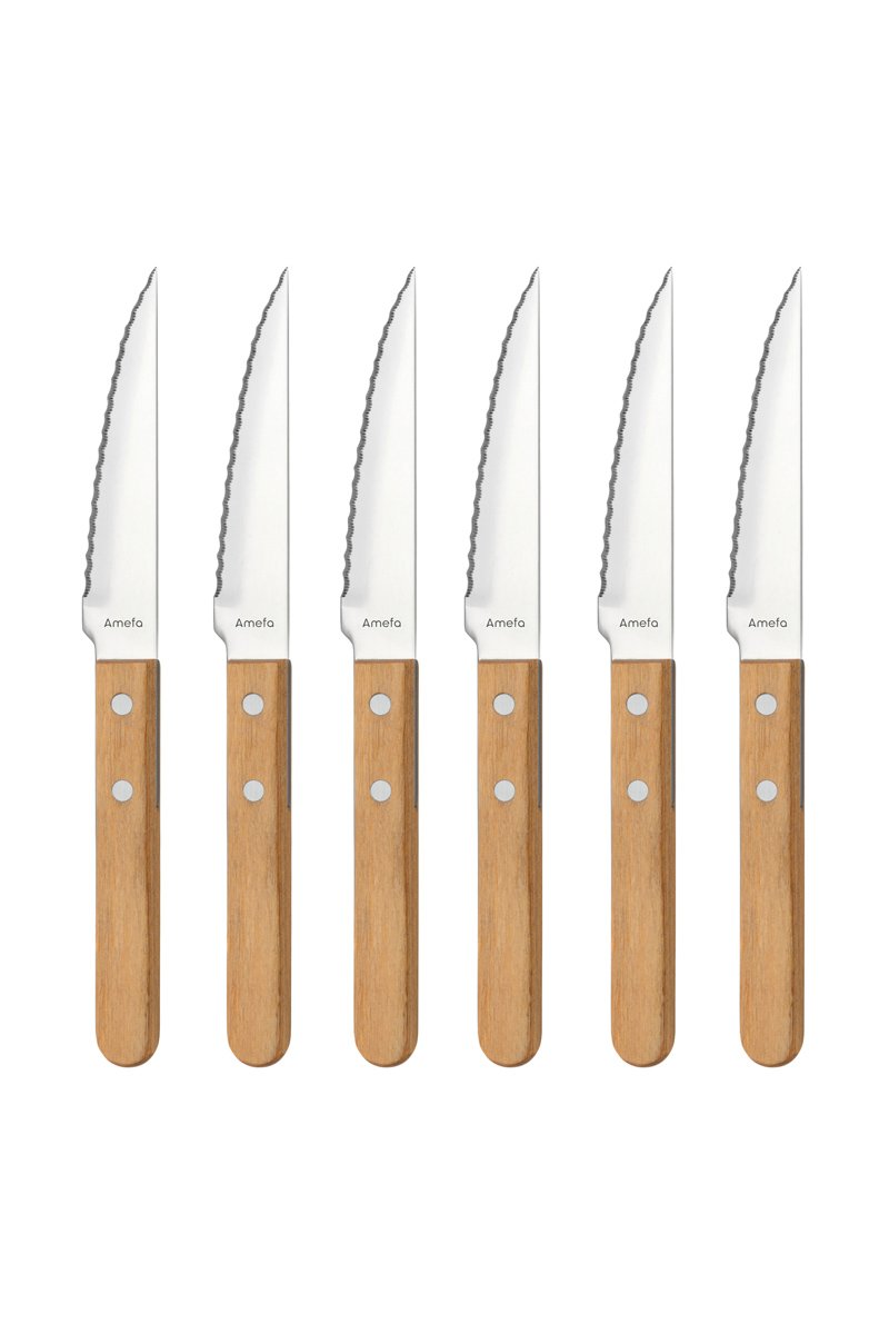6 Roestvrij Stalen en Pakkahouten Messen - 10,5 cm
