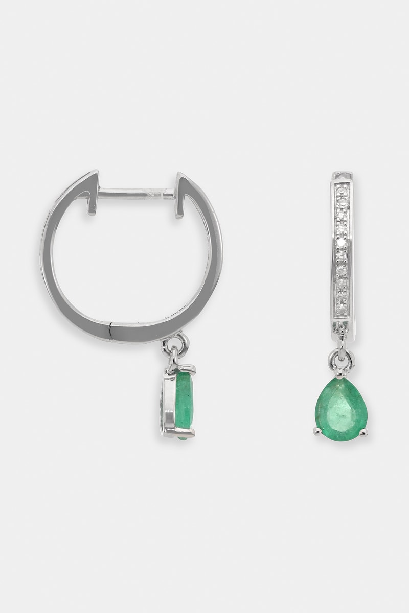 Oorbellen Juria - Witgoud, Diamanten en Smaragd