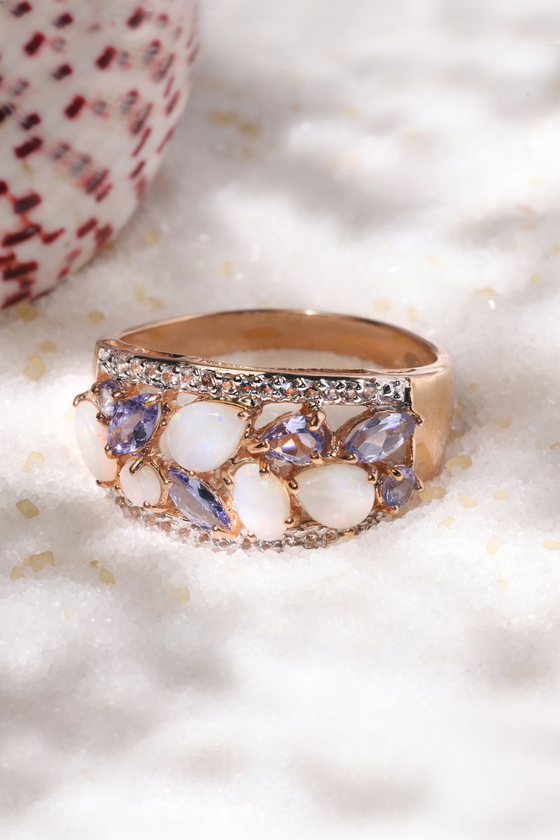 Ring Pandora - Roségoud, Opalen, Topazen en Tanzanieten