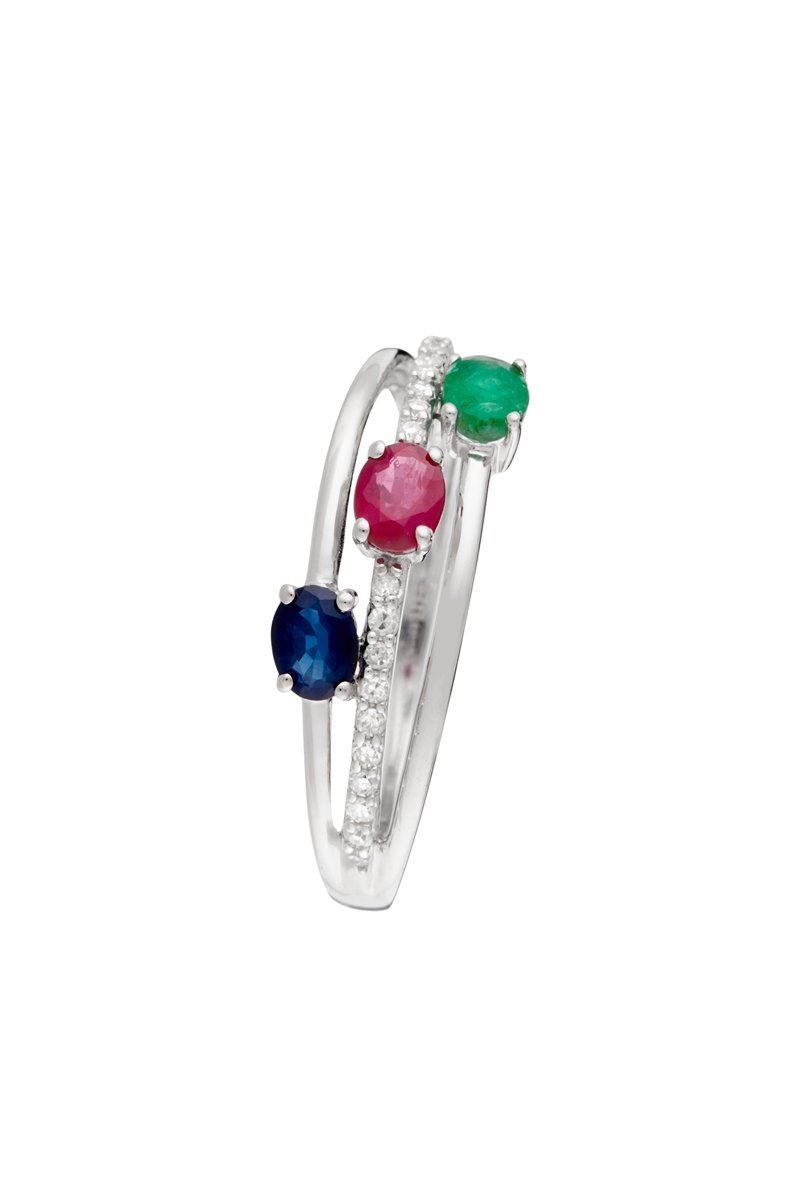 Ring Trio de Précieuses - Witgoud, Diamanten, Saffier, Smaragd en Robijn
