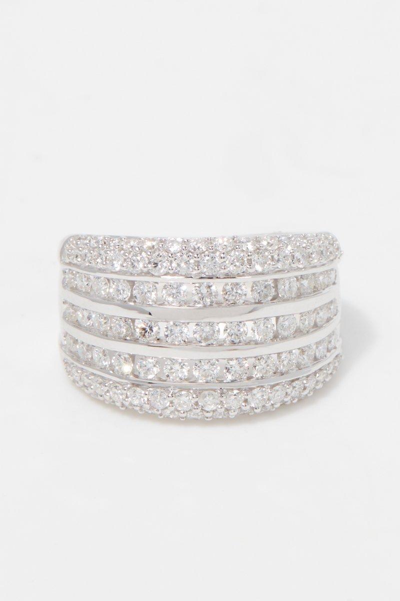 Ring van witgoud ingelegd met 105 diamanten.
