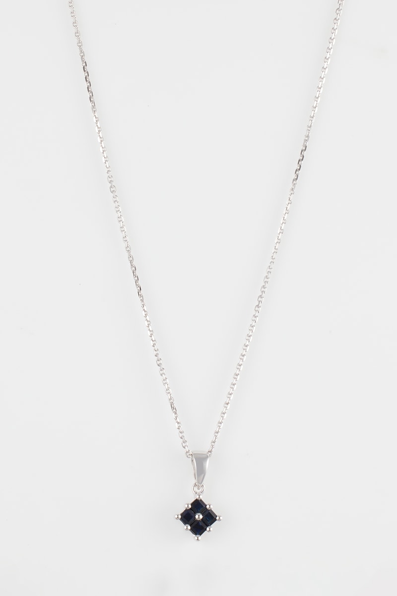 Hanger van witgoud ingelegd met saffieren.