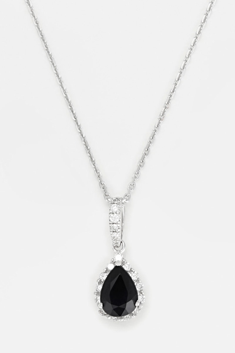 Hanger van witgoud ingelegd met 20 diamanten en 1 saffier.