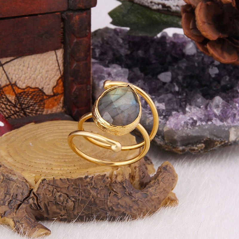 Verstelbare Ring - Messing Doublé Goud & Labradoriet