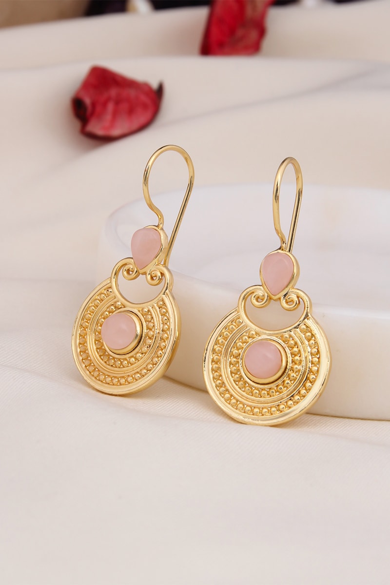 Hangende oorbellen van doublé geelgoud ingelegd met 2 kwartsen.