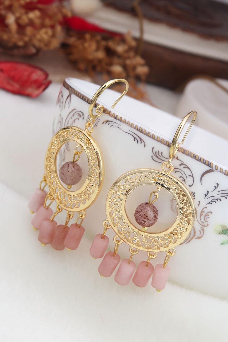 Oorbellen - Doublé Geelgoud en Kwarts