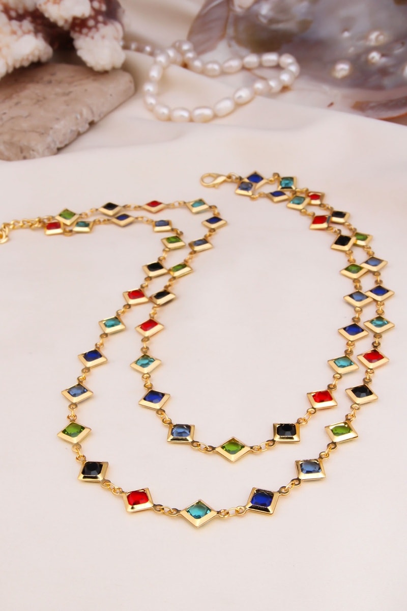 Ketting met meerdere rijen ingelegd met kristallen.