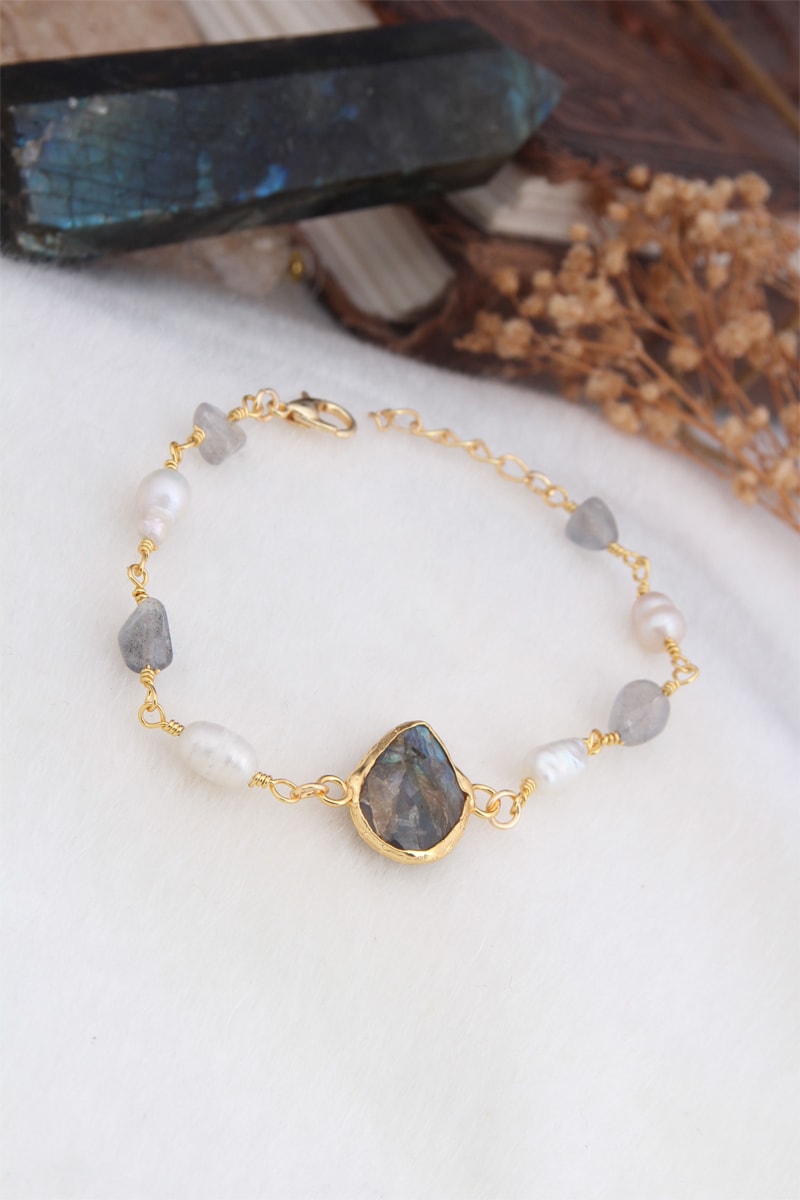 Armband van doublé geelgoud ingelegd met labradorieten.