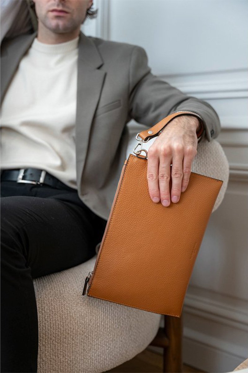 Clutch van gekorreld leer.