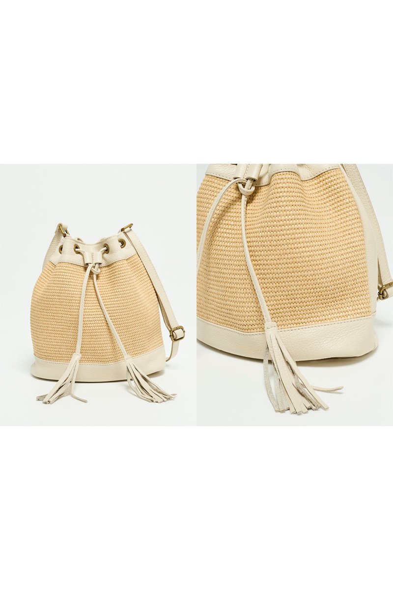 Leren en Rieten Buideltas Cerise Rafia - Wit