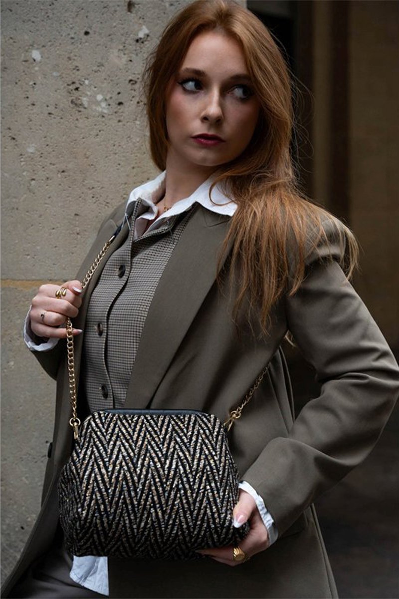 Leren Schoudertas Karyn - Zwart en Goudkleurig