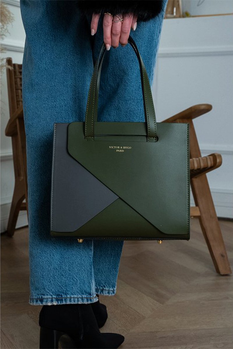 Leren Shopper Louane - Groen en Grijs