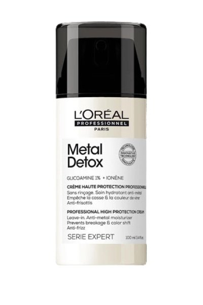 Geconcentreerd tot 1% in glicoamine, de leave-in crème verwijdert het metaal en beschermt de vezel tegen de afzetting van deeltjes, om breuk en kleurverandering te voorkomen.