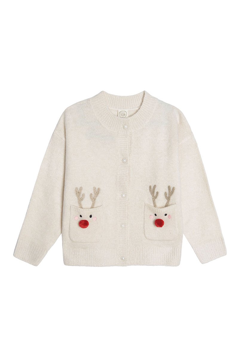 Geborduurd decoratief motief en pompons aan de voorkant.