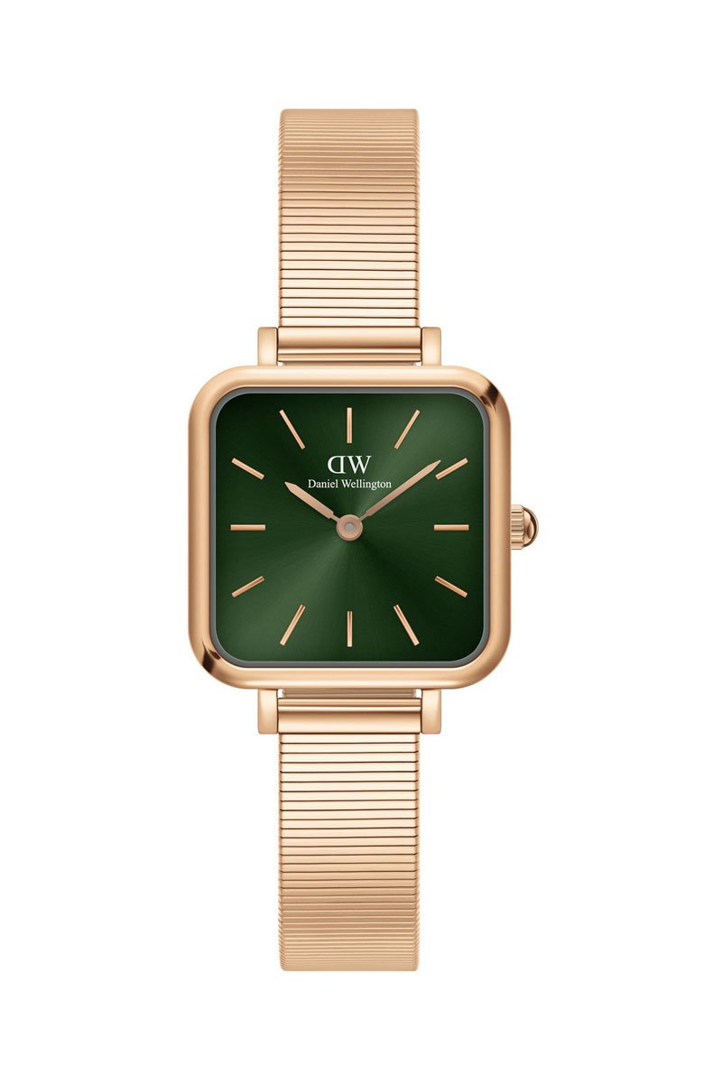 Stalen Quartz Horloge Quadro Studio - 22 x 22 mm - Goudkleurig en groen