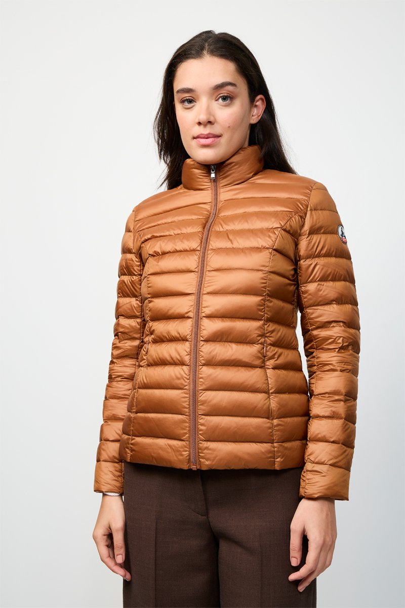 Gewatteerde jas met lange mouwen waarvan 1 met embleem en logo.