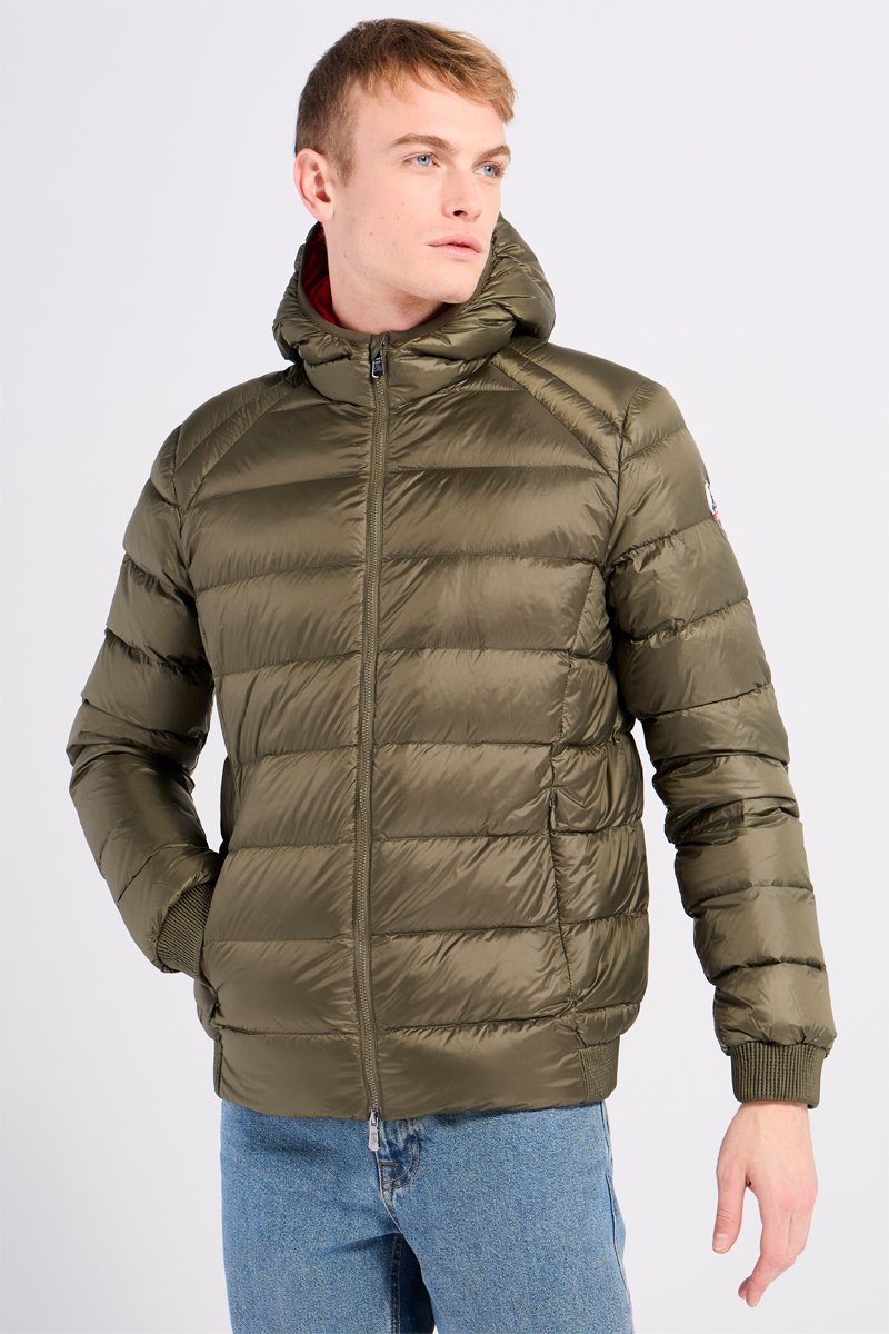 Doorgestikte Gewatteerde Jas met Capuchon Nat - Kaki