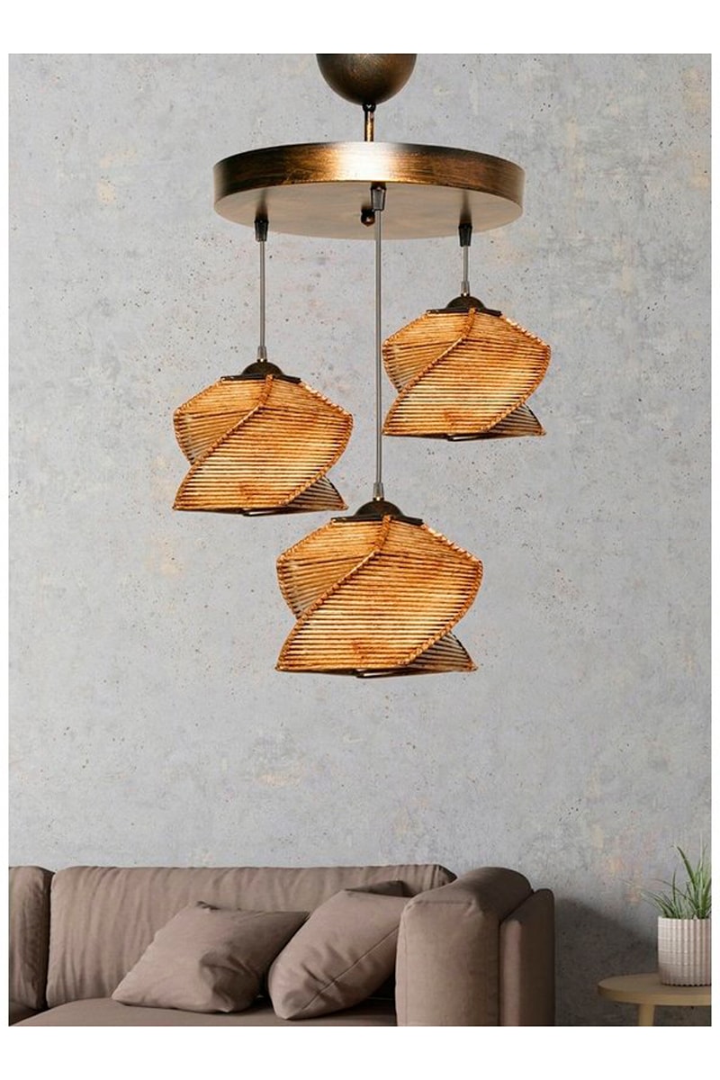 Hanglamp - Naturel en Goudkleurig - 3 x 60 W