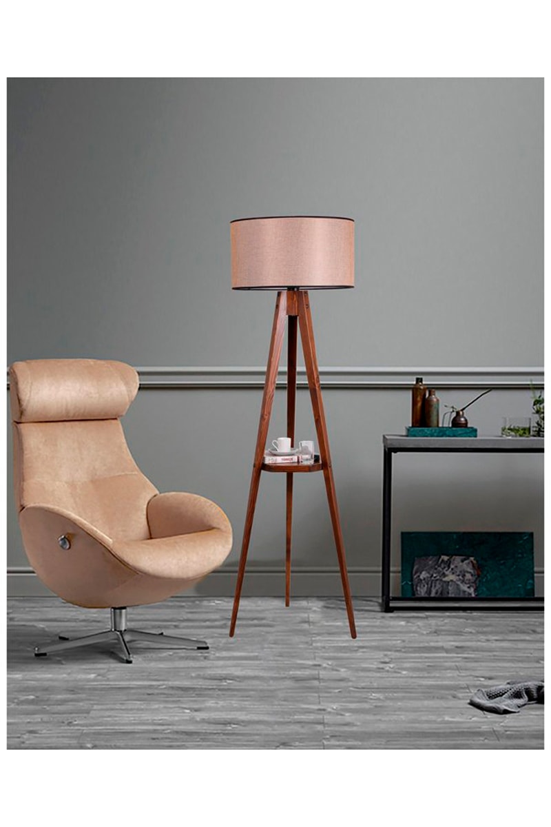 Houten Staanlamp - Beige en Naturel - 60 W - 153 cm