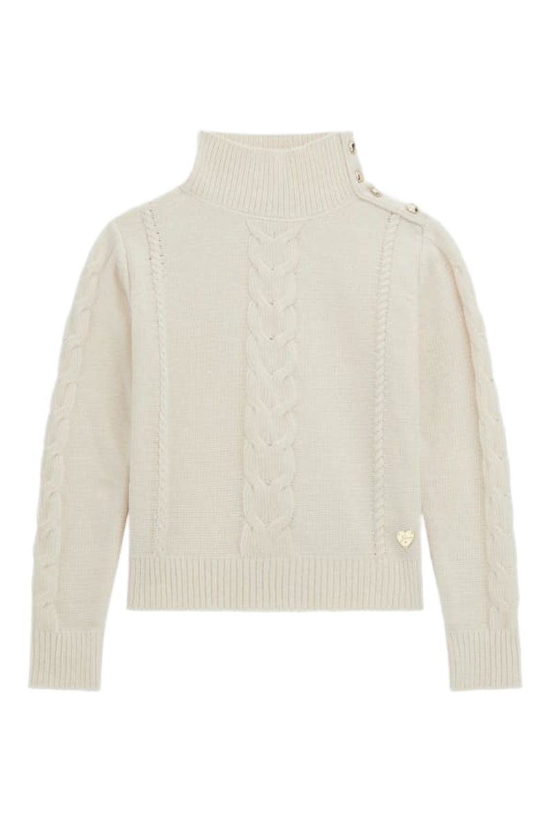 Ineengedraaid knitwear op de mouwen, aan de voorkant en aan de achterkant.