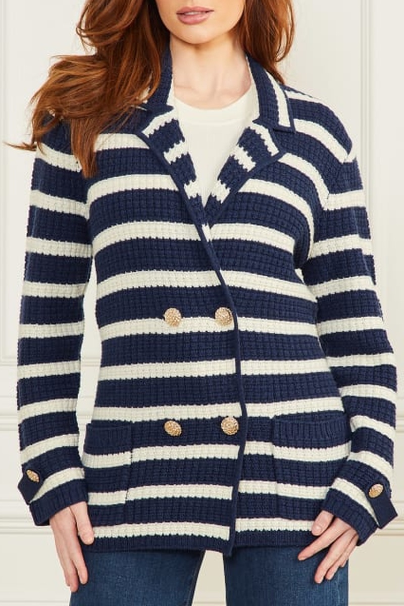 Wollen Vest Gaia - Marineblauw en wit