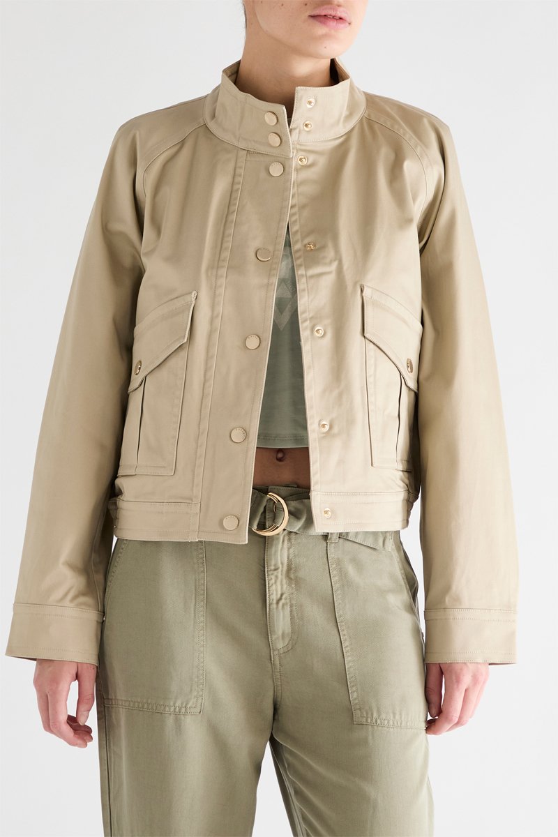 Jasje met lange raglanmouwen en drukknopen.