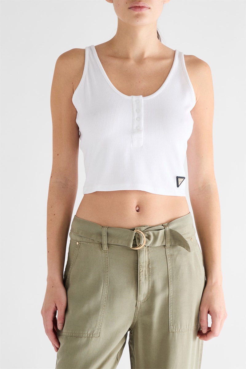 Geribd geweven crop top.