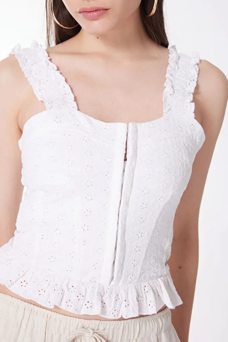 Haaksluiting aan de voorkant en ritssluiting aan de zijkant.