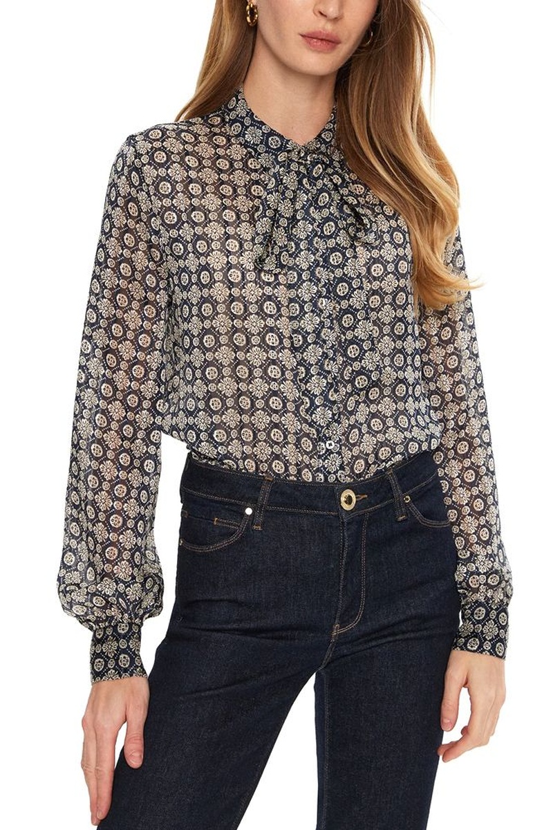 Blouse Oriana - Nachtblauw en Lichtgrijs