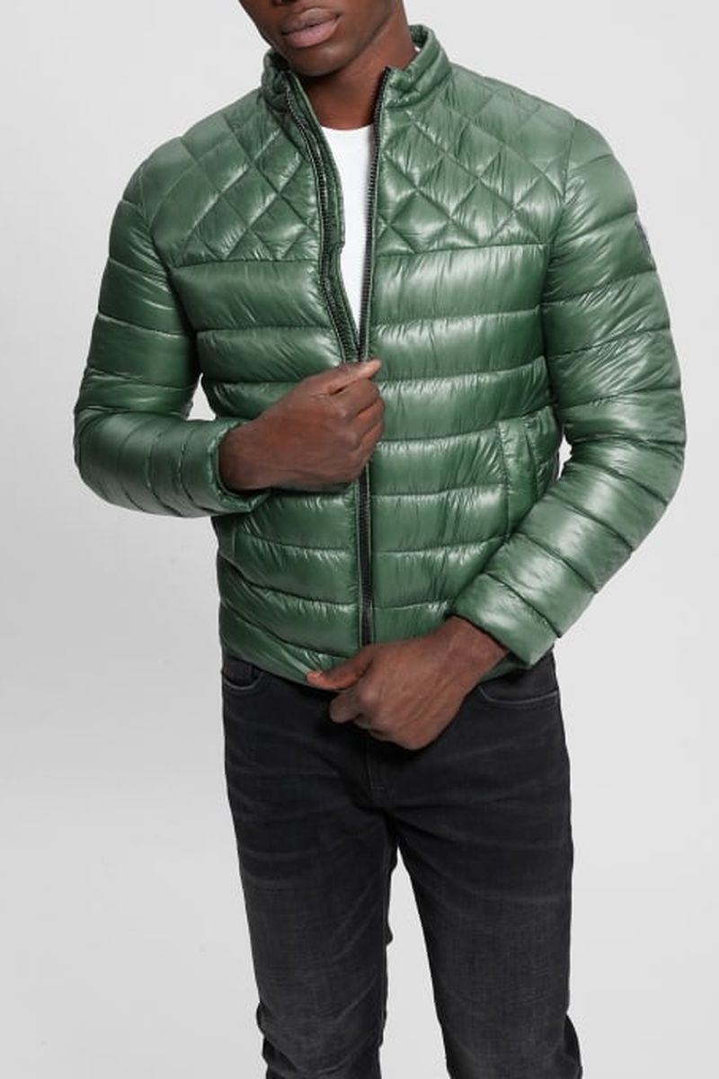 Gewatteerde jas met lange mouwen waarvan 1 met metallic logo.